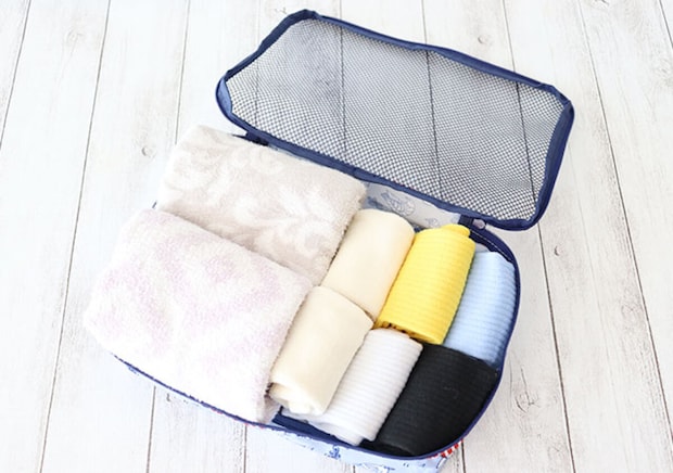 ガバッと大きく開くフタで、しっかり高さがあるので、旅行の際のタオルや下着、ガジェット類、文房具のストックなどを収納するのにぴったり。