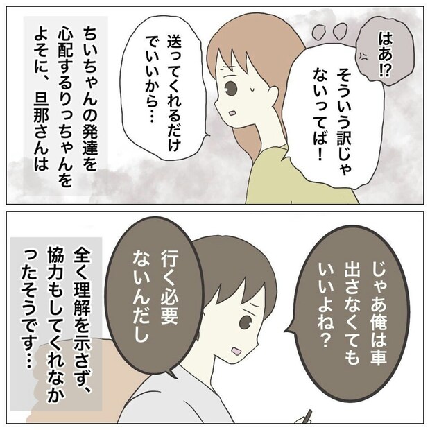 自分の子どもに何もないことが一番ですが、りっちゃんの夫の反応は悲しいですね。子どもを心配するうえでも人の反応は1つではありませんが、この態度はとても冷たく感じます。