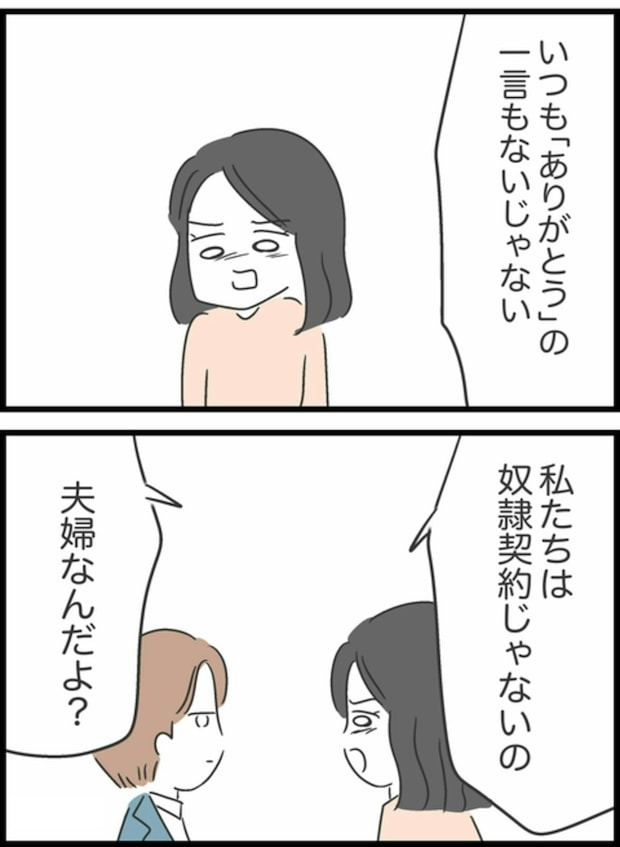 夫の発言、聞き捨てなりませんね。今まで、さんざんガマンしてきた ようこでしたが、ついに言い返します。夫婦は「奴隷契約」ではありませんね。助け合うのが理想ですね。