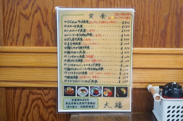ごはん大盛りは+60円、ミニうどんは+50円。財布にも、胃袋にもやさしいのが、大福流。