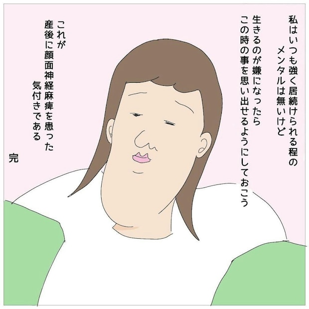しかし、これからも子どもの成長を見守るためには、お母さん自身も元気でいなくてはなりません。顔面麻痺を経験し「健康」であることの大切さを知ったみうらまるこさんの体験談『産後、顔面マヒを患った話』は、当たり前のような日常の尊さを改めて気づかせてくれる作品です。