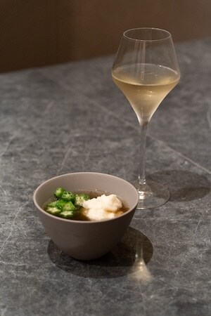 また「オクラと山芋のもずく酢」では、爽やかな酢の酸味が「カバ・デ・グアルダ・スペリオール・レセルバ」の繊細な泡立ち、清涼感を高め、さっぱりとした後味を楽しめる。