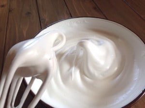 大きめのボウルに卵白を入れ、グラニュー糖を3回に分けて加えツヤのあるメレンゲを作ります。