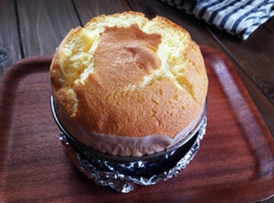 型にゆっくり流し入れ、160度のオーブンで約35〜40分湯煎焼きにします。焼き上がったら、型を軽く叩きつけて焼き縮みを防止します。粗熱が取れたら冷蔵庫で3時間程冷やして出来上がりです。
