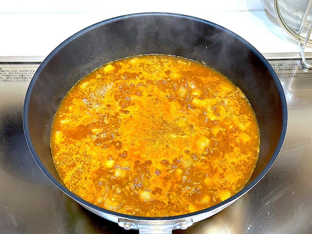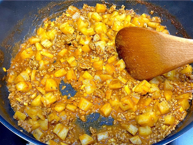 4. 3に混ぜ合わせておいた[A]を加え、水気がなくなるまで煮込む。