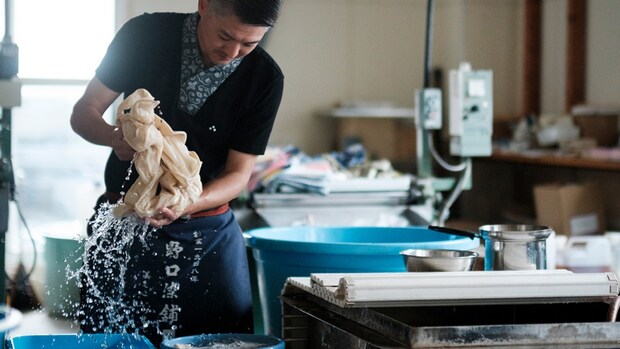 カラーは「グリーン」「グレー」「ベージュ」の3色展開。ぶどうの品種によって変化する染液の色合いや、銅・鉄を使った媒染の違いによって生まれる色合いで、一つひとつ異なる表情を楽しめるのが特長だ。