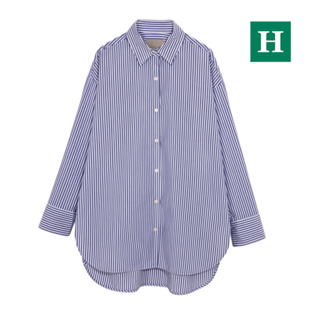 サイズ感、丈、色、ピッチ、どれを取ってもパーフェクトな、永遠に愛せるストライプシャツ。レイヤードや腰巻きなど、コーディネートを盛り上げるアクセントとしても重宝しそう。シャツ¥7,990(アンフィーロ)