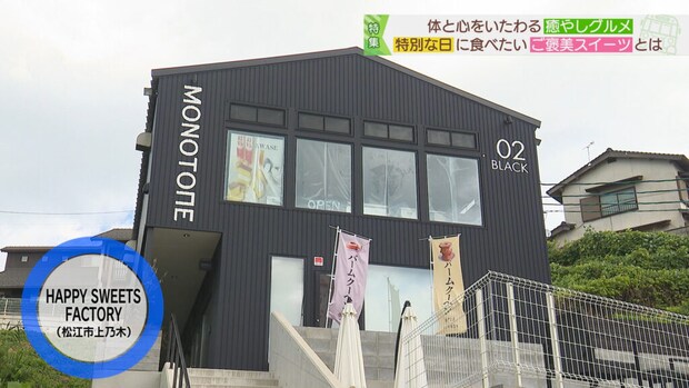 松江市上乃木の複合施設「MONOTONE」内の洋菓子店、「HAPPY SWEETS FACTORY」。