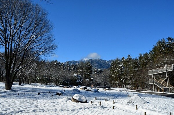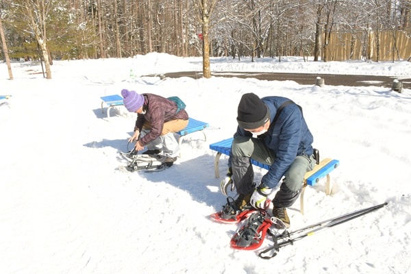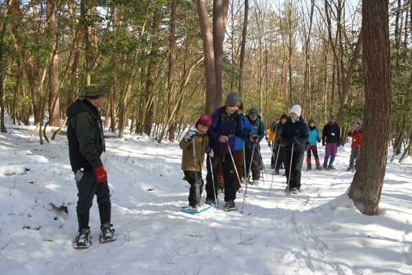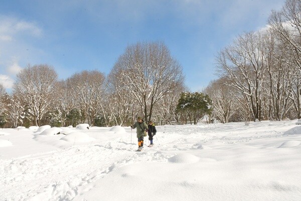 1月11日(日)、17日(土)に開催される「スノーシュー体験ツアー」は入園料が必要となるが、参加費は無料。定員は各日先着15名で、事前申込制。定員に満たない場合は当日も受け付ける。参加者はインフォメーションセンターに集合後、レンタル棟でスノーシューを受け取り、ガイドの案内でツアーを開始。スノーシューは公園で無料で用意するため、持ち物は防寒着、長靴またはスノーブーツのみで参加できる。貸出時間は閉園の30分前まで。平日はインフォメーションセンター受付けで貸出できる。