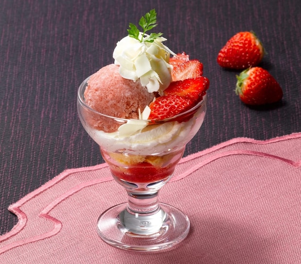 手軽に楽しめる「プチストロベリーパフェ」(単品825円)も登場。フレッシュ苺やストロベリーソルベ、スポンジケーキなどを重ねた、満足感のあるプチサイズのパフェだ。