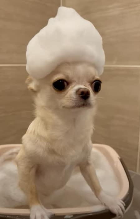 お風呂に入っているチワワさん。
