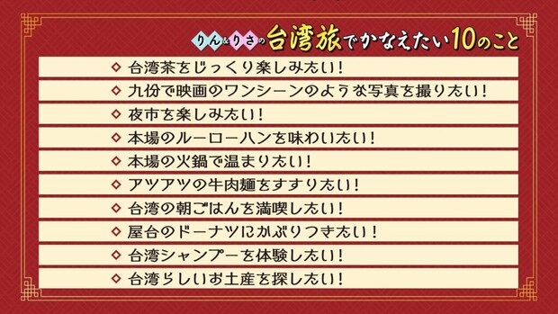 旅のテーマは「台湾で叶えたい10のこと」。
