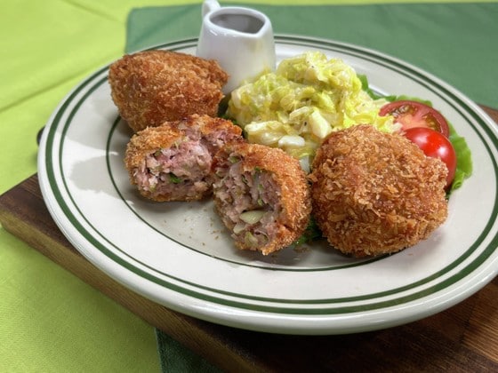 軽い味わいの白菜メンチカツ水分の少ない白菜の外側の部分をみじん切りにして塩もみをし、しっかり水分を絞ります。塩もみすることで、白菜の甘みが引き立ち、シャキシャキ食感が楽しめるそうですよ。