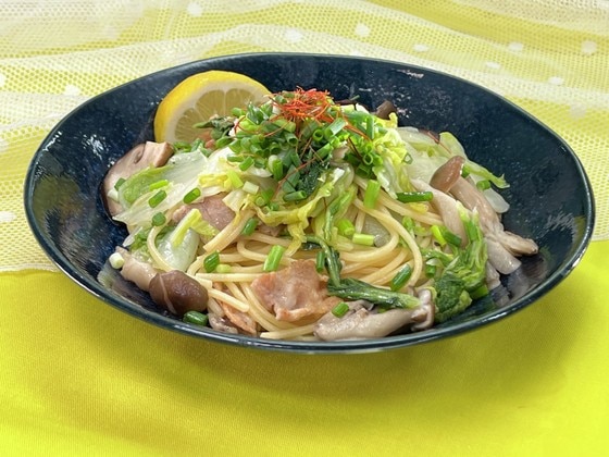 1. うまみ凝縮!「塩もみ白菜のワンパン和風パスタ」