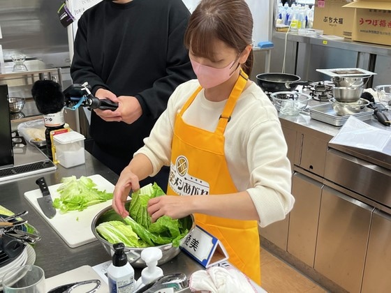 「あしたマネしたい白菜レシピ」のテーマでオリジナルレシピを考案し、料理対決を行いました。