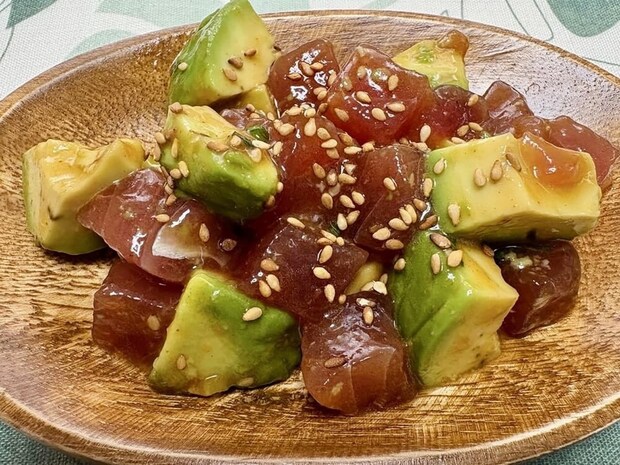 アボカドのクリーミーさが加わることで、後味がさっぱりしてくどさを感じません。また、赤色のマグロと緑色のアボカドが混ざり合い、彩り鮮やかになって食卓が映えるのも魅力の一品です!