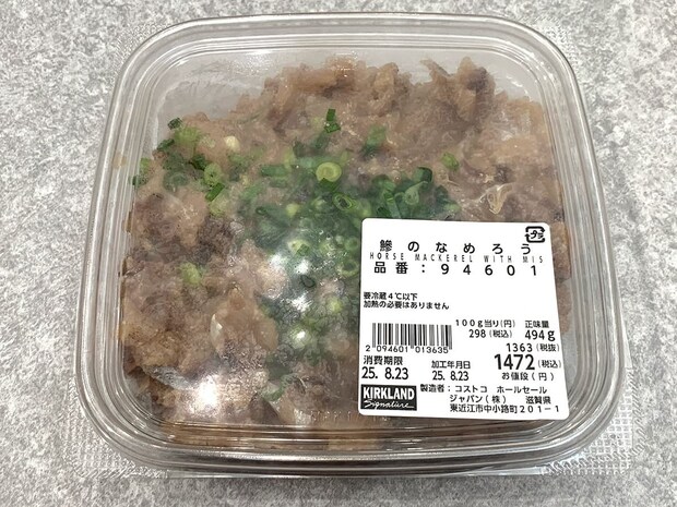 新鮮な鯵を生姜・味噌・ニンニクなどで味付けした一品。価格は100gあたり298円(税込)と、コストコの魚介系デリカの中では比較的安価です。