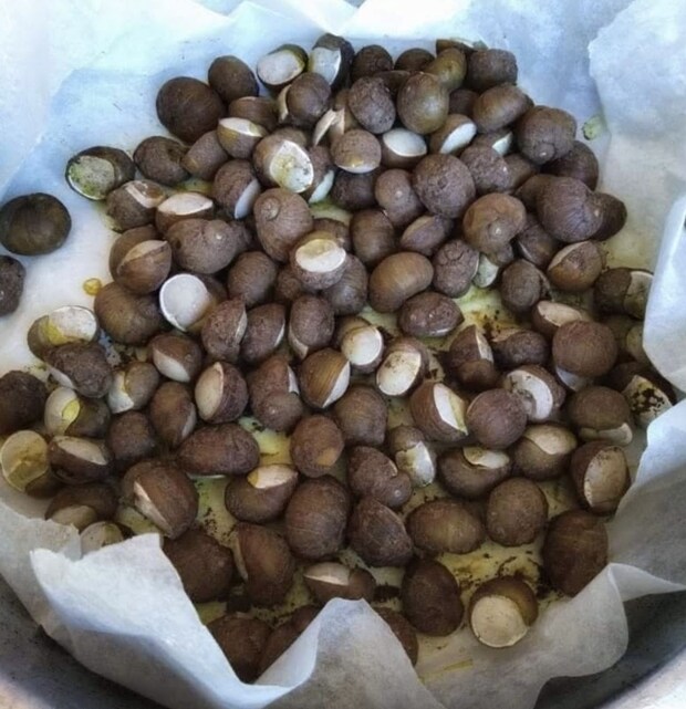 外で売られているのは、殻ごと炒めたりオーブンで焼いたりしたものを、塩・オリーブオイル・ハーブで味付けしてあり、爪楊枝などで中身を取り出して食べます。