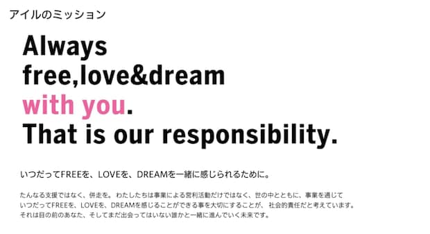 岩本哲夫氏は、ビートルズを愛し、長くバンド活動をしてきたという経歴から、「形式張ったことよりも感覚的に仕事をしていきたい」という思いを持っていました。そのため、創業当初から「FREE,LOVE & DREAM」を掲げ、個性や愛情、信頼などを大切にし、夢を持てるような社会を作っていくのを目指しながら事業を展開してきたそうです。