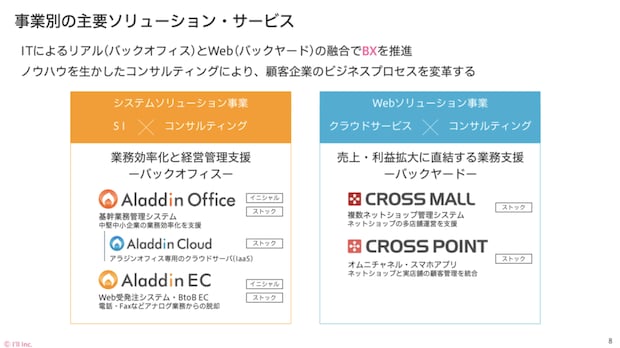 アイルは、販売管理や在庫管理といった基幹システムを提供する「システムソリューション事業」と、ECのバックヤード業務を効率化するクラウド型の「Webソリューション事業」の2つを事業を主に展開しています。