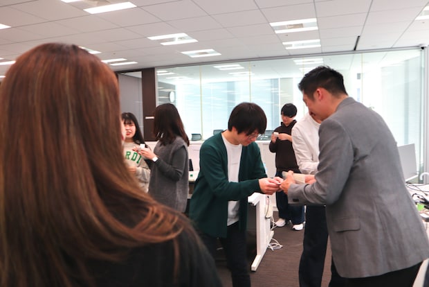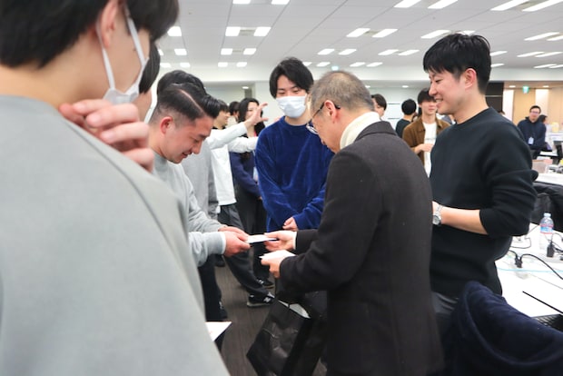 その後、執務室に移動し、役員がお年玉のポチ袋を直接社員に手渡しする「お年玉手渡し会」が行われました。