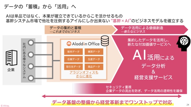 「当社は35年間、基幹システムの分野で企業の重要なデータを扱ってきました。今後はそのデータを活用し、AIなどの最新技術を取り入れながら、お客さまのデータ分析や経営支援を強化していくことが重要と考えています。さらに、業種ごとのデータを横断的に分析することで、新たな知見や価値を創出できる可能性もあると思っていて、従来とは違った価値提供を創造していけるように尽力したい」