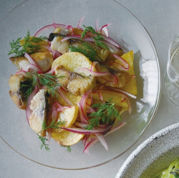 さばの塩気とじゃがいものしっとり感がヤミツキになる、絶品マリネ。しっかり食べごたえがあり、ディルの爽やかな香りも食欲をそそる。
