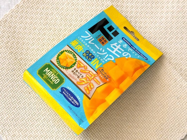 まるで生のフルーツのような食感にこだわっている、ドン・キホーテのプライベートブランド商品「マンゴーグミ」。細かく刻まれたドライマンゴー果肉も練り込まれており、ねっとりとやわらかい食感が特徴です。