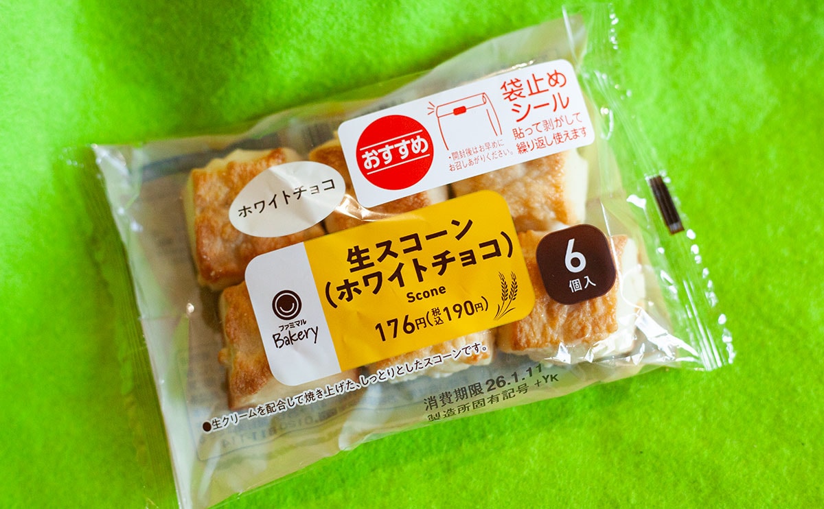 2026年1月6日(火)、ファミリーマートが発売したのが、「生スコーン6個入(ホワイトチョコ)」(税込190円)という新商品です。