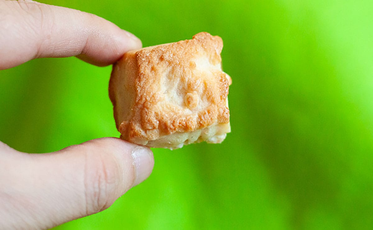 この生スコーンは、1袋に6個入っているのですが、一つひとつは小さめ。いわゆる一口サイズのスコーンです。