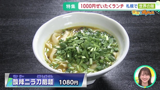 ここでのおすすめは、中国発祥の「酸辣(サンラー)ニラ刀削麺」(1080円)。
