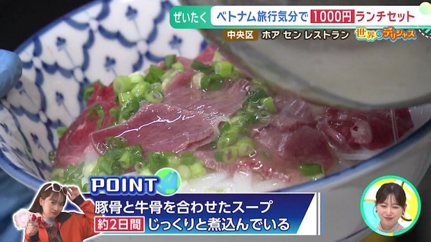 ベトナムを代表する麺料理「フォー」に、揚げ春巻き、生春巻き、サラダがセットになった、まさに「ぜいたく」な一品です。
