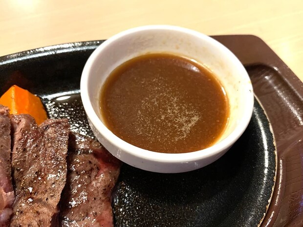 オニオンソースはさっぱり寄りというより、結構味が濃い目。たまねぎの甘味がステーキを包み込み、肉の旨味を一層引き出しています。