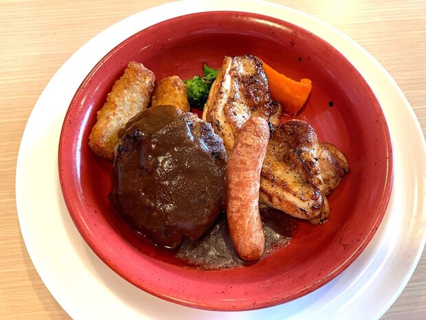 ハンバーグ、チキン、ソーセージそれぞれが十分すぎるサイズ感なので、お腹への満足感を重視したい方にもイチオシですよ!