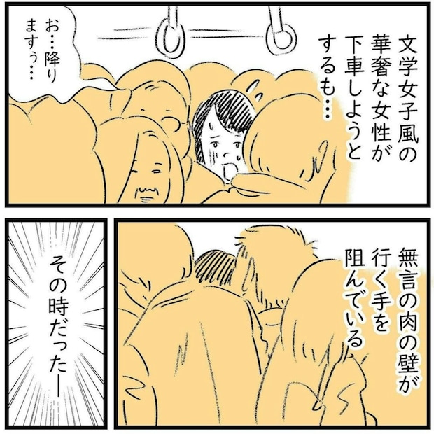 トンさんは、満員電車の中で1人の女性が降りようとしていることに気付きました。そこで、周囲の乗客たちにその女性が下車しようとしていることを知らせました。
