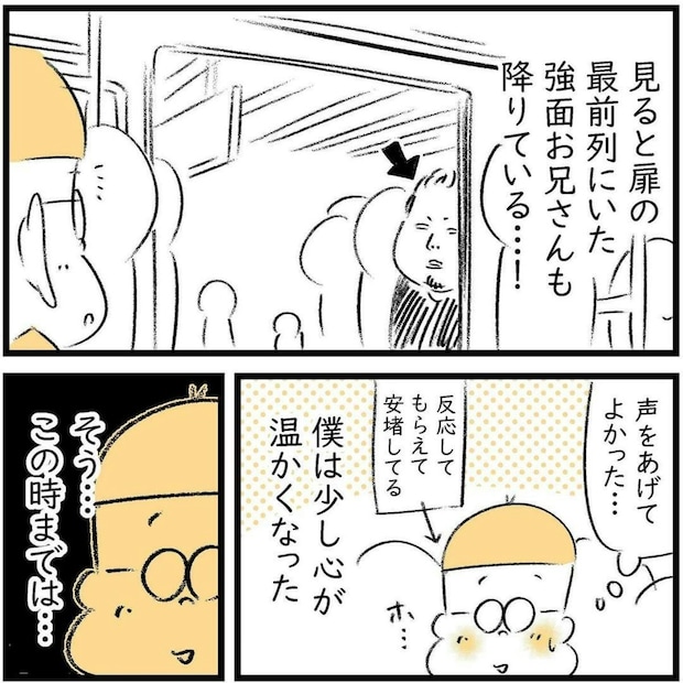 そのとき、ホームには強面の男性が取り残されてしまい、怒りにまかせてドアを激しく叩き始めました。さらに、駅員に向かってドアを開けるように威嚇する様子も見せます。その姿を見たトンさんは、「もしこの男性が車内に戻ってきたら、自分に怒りが向けられるのではないか」と不安でたまりませんでした。