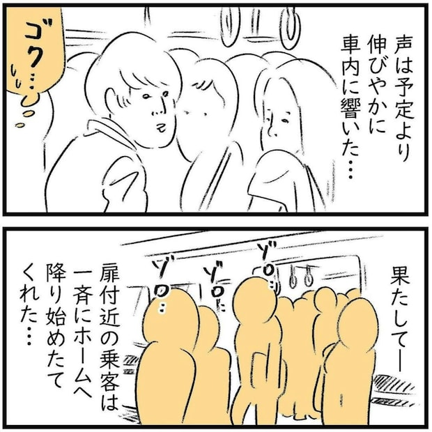 トンさんは「降りる人がいます」と周囲の乗客に声をかけました。その声を聞いたドア付近の乗客たちは、次々と電車を降り始めました。