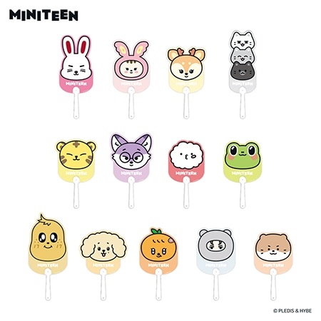 「MINITEEN FAN(うちわ)」750円は、サイズがW131×H217mm、持ち手はW28×H136mm。