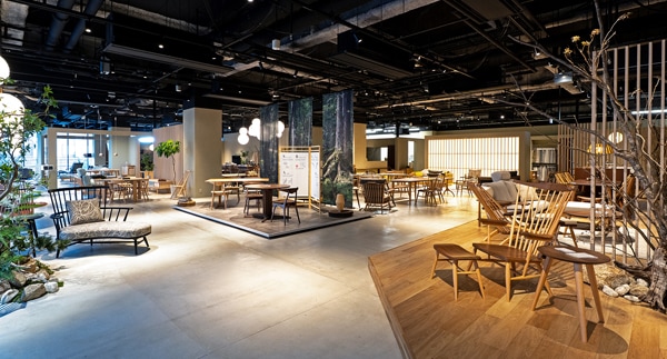 1943創業の飛騨高山を代表する家具メーカー「柏木工(KASHIWA)」は、直営のインテリアショップ「KASHIWA NAGOYA」を、愛知県・名古屋駅 ささしまエリア商業施設「グローバルゲート」2Fに移転・リニューアルオープンした。