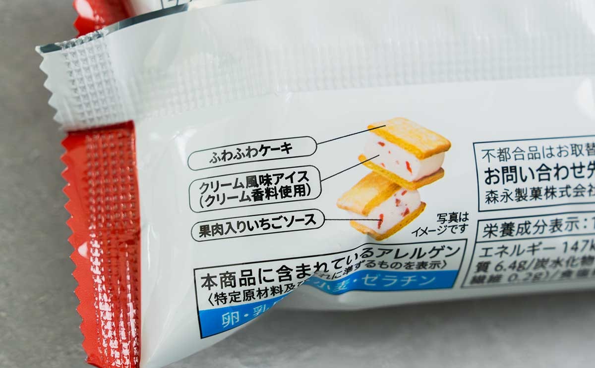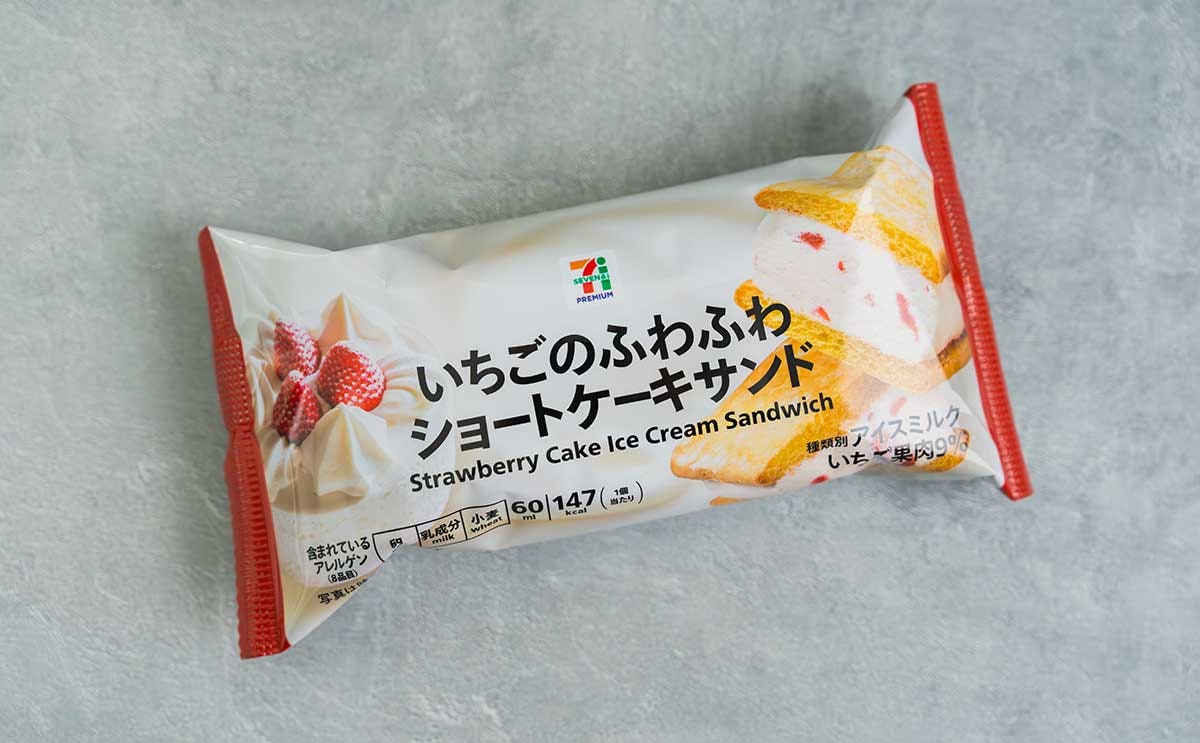 セブンプレミアムブランドから登場した本商品は、果肉入りいちごソースが入ったクリーム風味アイスと、ふわふわケーキを組み合わせたサンドアイスです。