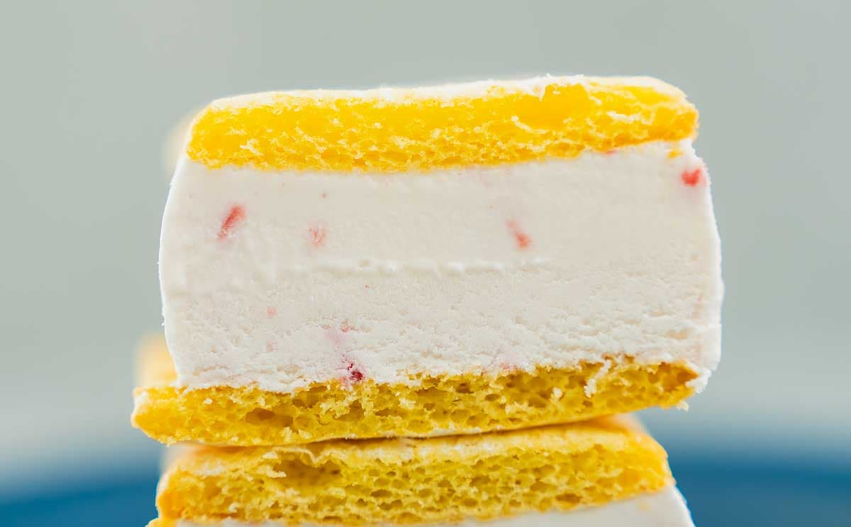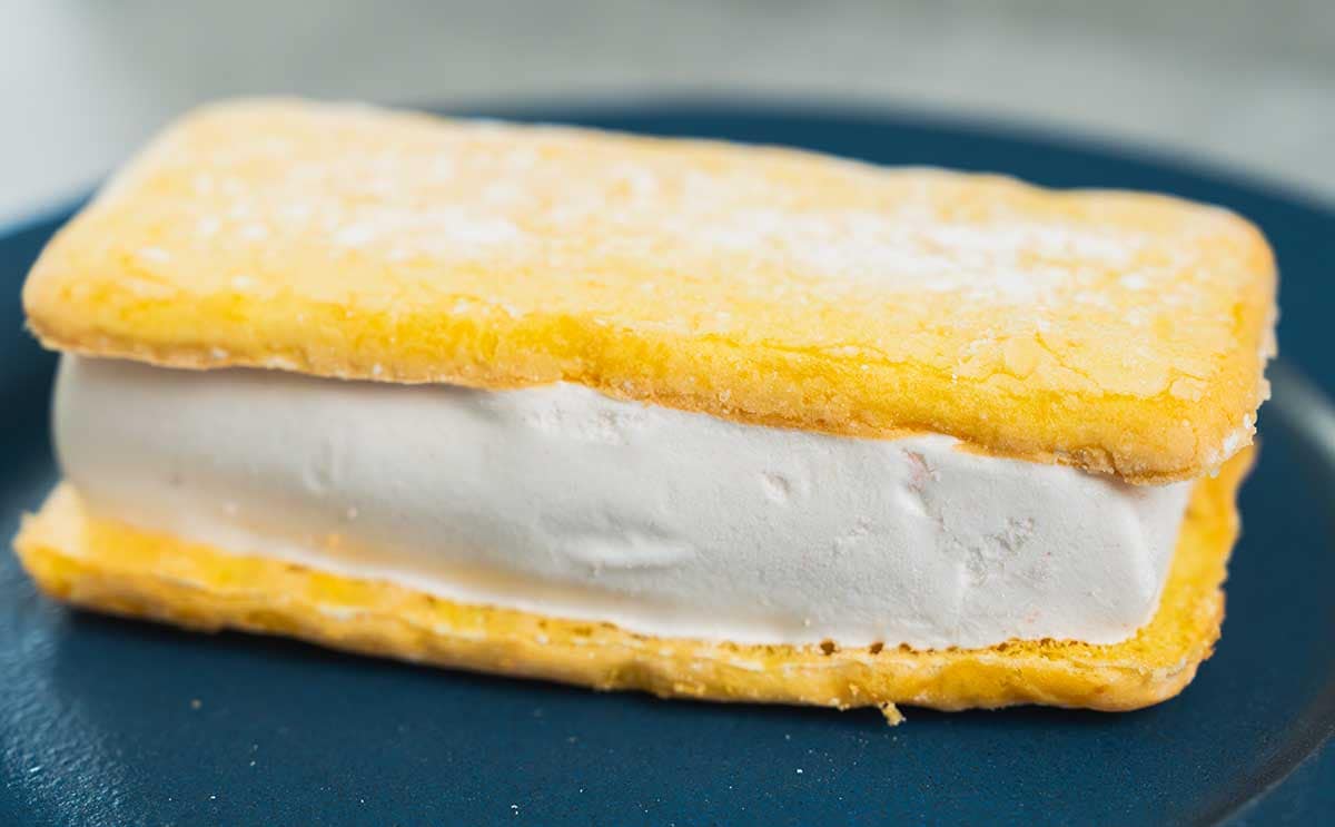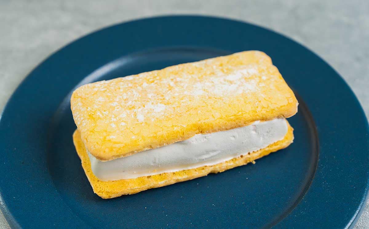 ケーキのあいだにアイスがみっちりとサンドされています。