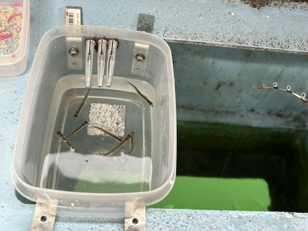 マイナス5度、早朝の湖でワカサギ釣りです。