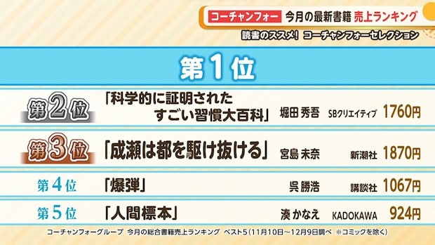 大野アナ:一旦ここまでの順位の振り返りです。今月の第1位はどんな本なのでしょうか?