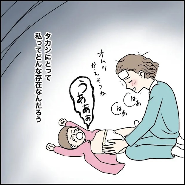 仲直りをしたものの、子どもが産まれてもタカシは何も変わりませんでした。それどころか夜泣きがひどい時には「仕事なんだけど?」と言うだけ。挙句の果てに「育休で昼間家にいるんだから光熱費多めに払って」と言われて絶句、圧に負けて「うん・・」と答えるしかありません。子どもが熱を出した時には「頼むからうつすなよ。迷惑かけないで」と看病も心配すらもせず自分優先のタカシ。私はモモを心配しつつオロオロしていました。