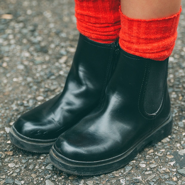 MA-1とピリ辛ムードをシェアしたブラックブーツ。レッドのソックスをレイヤードして、足もとから元気をチャージ!