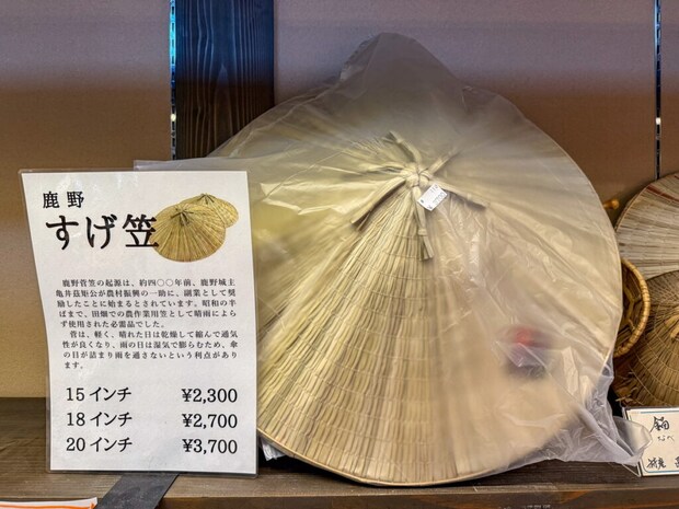 地元の人たちが作る産品や、鹿野町で古くから伝わる「菅笠(すげがさ)」も。