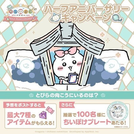 アプリボットが企画・制作・開発・運営を行うスマホアプリ「ちいかわぽけっと」は、9月27日(土)にアプリ公開からハーフアニバーサリーを迎える。