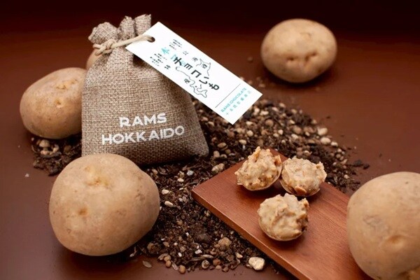 じゃがいもの保存袋をイメージしたパッケージが特徴の「倶知安ちょこいも」は、北海道・倶知安町で熟成じゃがいも「五四◯」を手がける本間浩規氏とのコラボ。