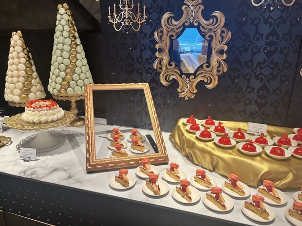 マーク・ミーニー総支配人はマリー・アントワネットについて言及した後、「スイーツ台はヴェルサイユ宮殿をイメージした装飾にしている。ここに並ぶスイーツの中からお気に入りのものを見つけてほしい」とあいさつした。