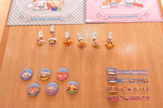 さらに、店舗の各テーブルに備え付けられた「皿回収ポケット」に、食べ終えた皿5枚を入れるとゲームに挑戦できる「ビッくらポン!」では、当たりが出るとシナモロールやエスプレッソ、カプチーノらがパジャマを着た姿がデザインされた「フィギュアストラップ」(全6種)、「缶バッジ」(全6種)、「マスキングテープ」(全4種)がもらえます。